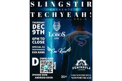 Join the TechYeah! vol.2 @ThePeninsulaLounge on the #CaliRiviera, Thursday, December 9th to celebrate Orange County’s expanding tech scene with SlingStir.