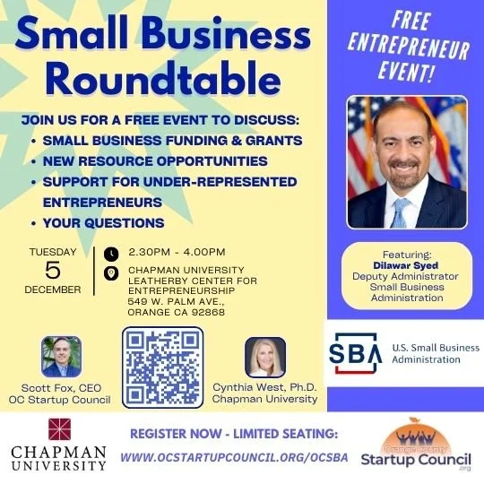 Meet the Deputy Administrator of the SBA at a special Small Business Resources Roundtable from the OC Startup Council at Chapman University
