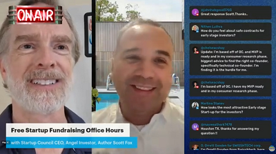 In this episode of our free Startup Fundraising Office Hours, StartupCouncil.org CEO Scott Fox took lots of questions from startup friends worldwide - both on camera and via chat. These mostly focused on helping startup founders accelerate their fundraising process to raise money from angel investors and venture capital firms including: